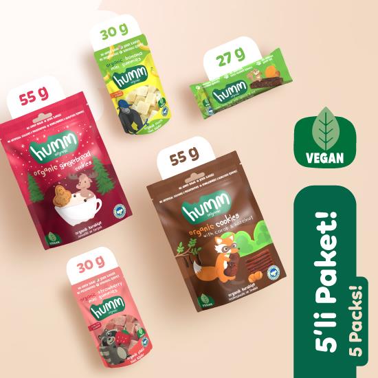 Humm Organic Ara Öğün Atıştırmalık Paketi, günün her anında ihtiyacınız olan enerjiyi sağlamak ve lezzetli atıştırmalıklarla tatlı bir mola vermek isteyenler için özel olarak hazırlandı. Bu paket, beş farklı lezzeti bir araya getirerek size çeşitli seçenekler sunar. İşte bu paketin içeriği: